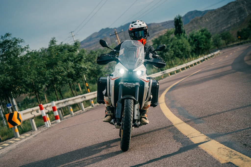Pero donde la 800X GT marca su propio territorio es en su puesta a punto. KOVE ha adaptado la parte ciclo hacia un uso más asfáltico sin perder versatilidad: ruedas de radios de 19″ delante y 17″ detrás, un recorrido de suspensiones de 210 mm (frente a los 240 mm de la Pro) y una altura de asiento de 826 mm. El resultado es una moto más cómoda en carretera, más fácil de manejar con carga y pasajero, y con una postura de conducción que no cansa en los viajes largos.