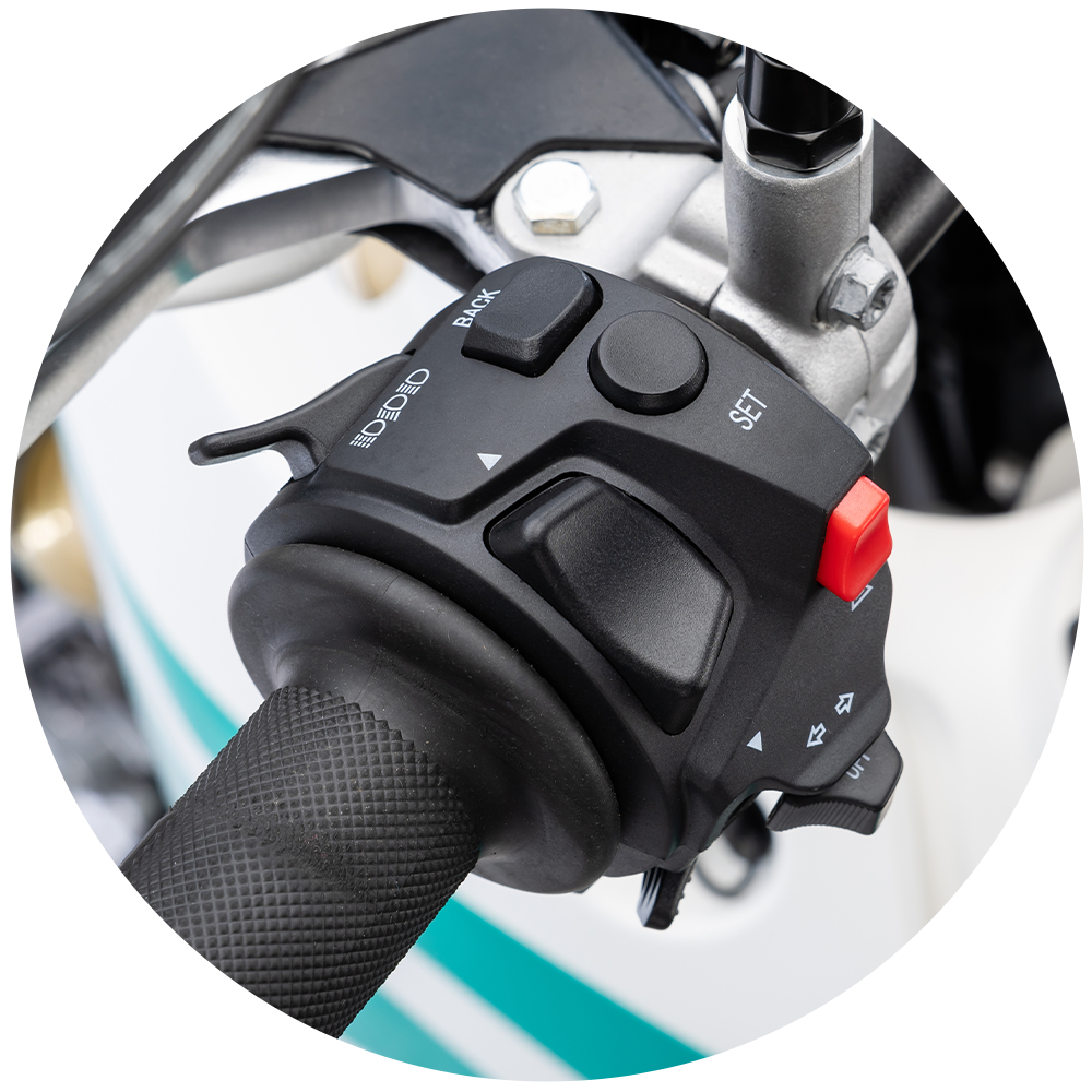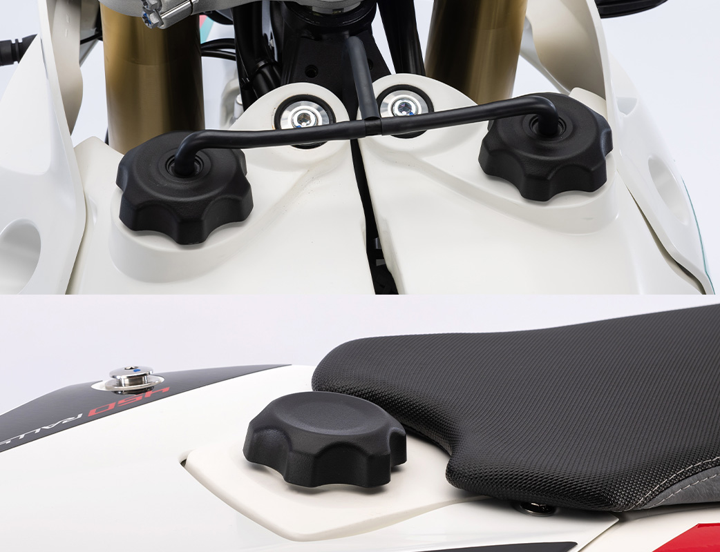 Con 310 mm de altura libre al suelo y asiento a 960 mm. Diseñada para disfrutar tanto en largas distancias como en conducción deportiva off-road.