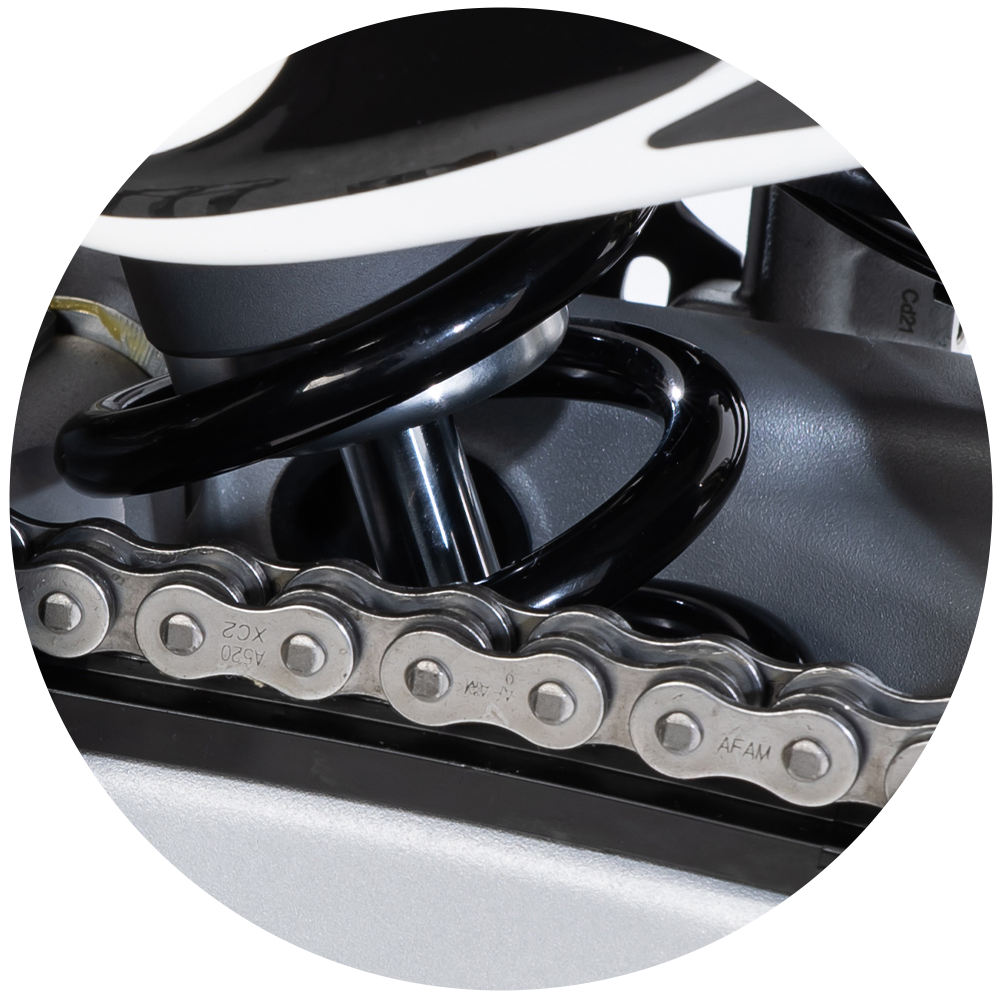 Trasera | Monoamortiguador con recorrido 117 mm, multiregulable en precarga, extensión y compresión. Proporcionando una mejora significativa en la adaptabilidad, control, confort y rendimiento.