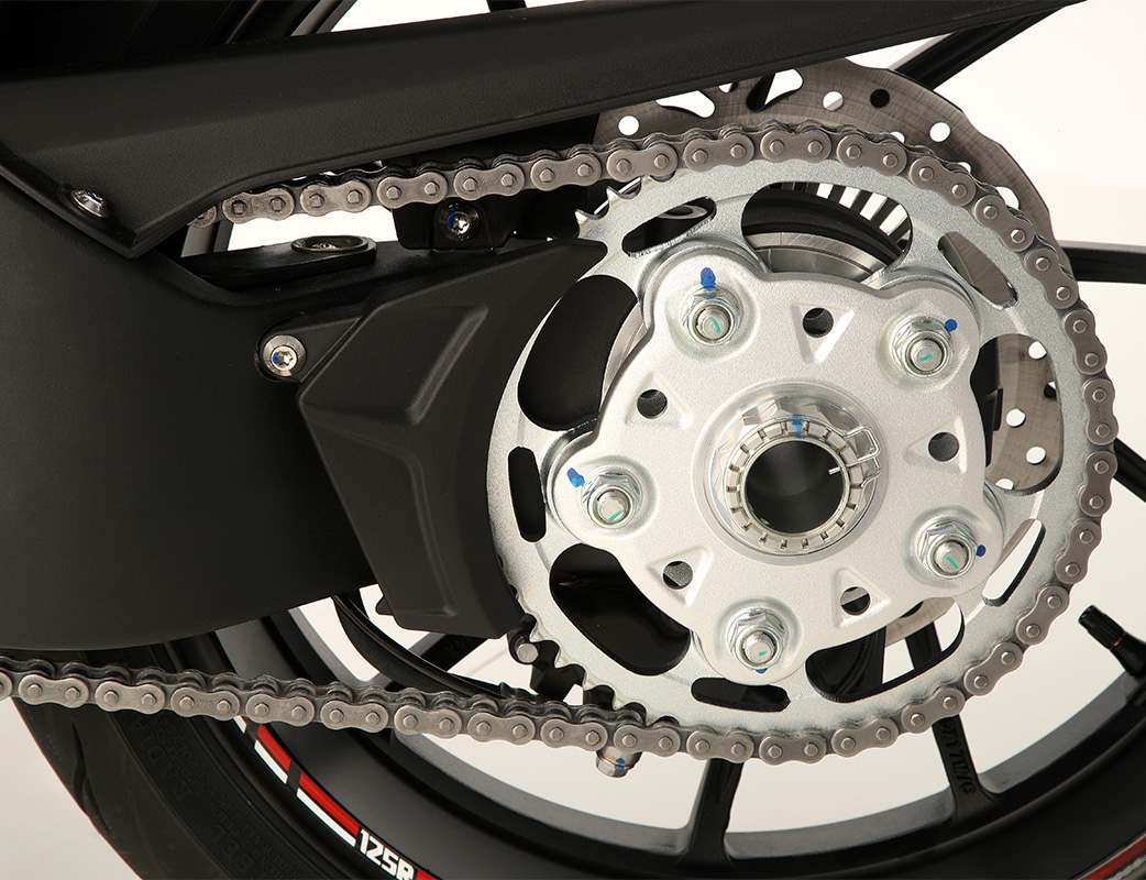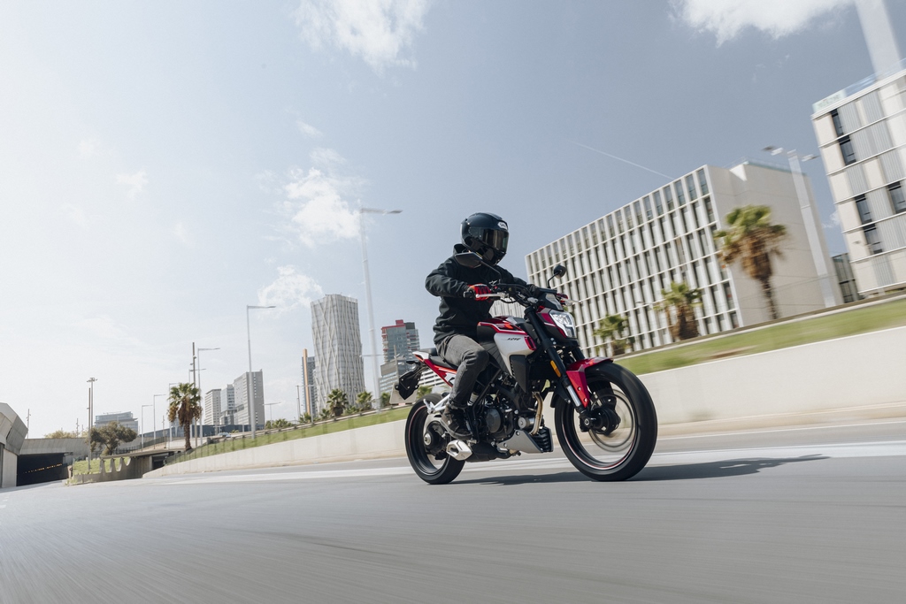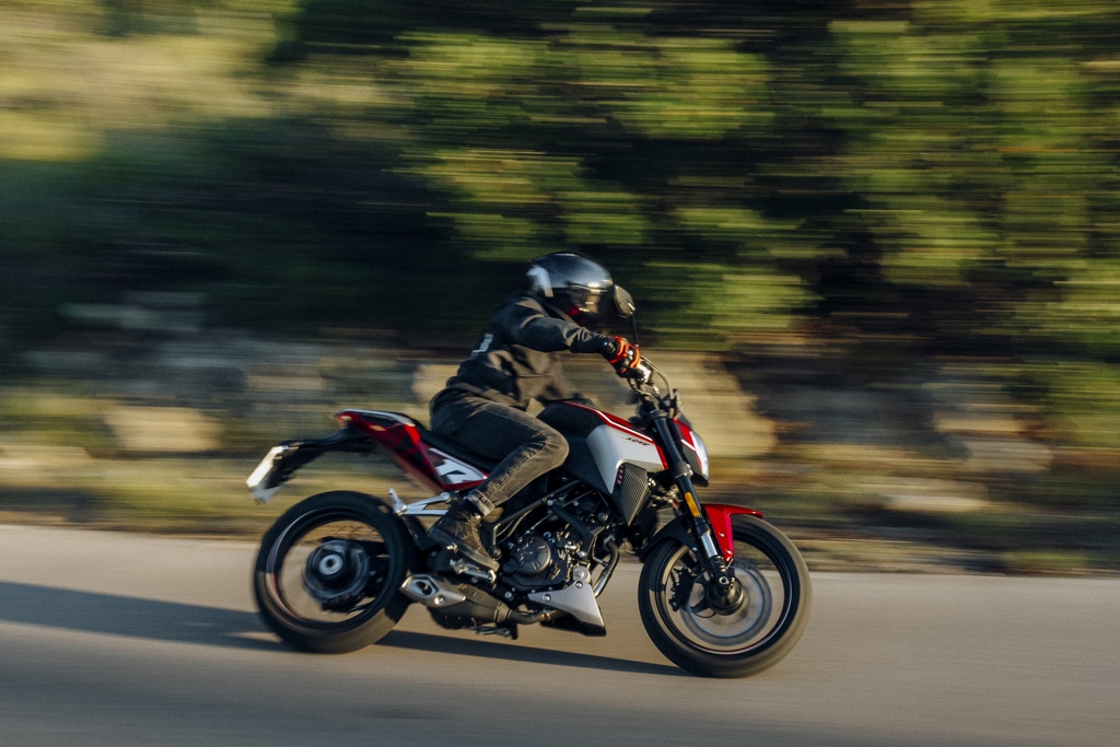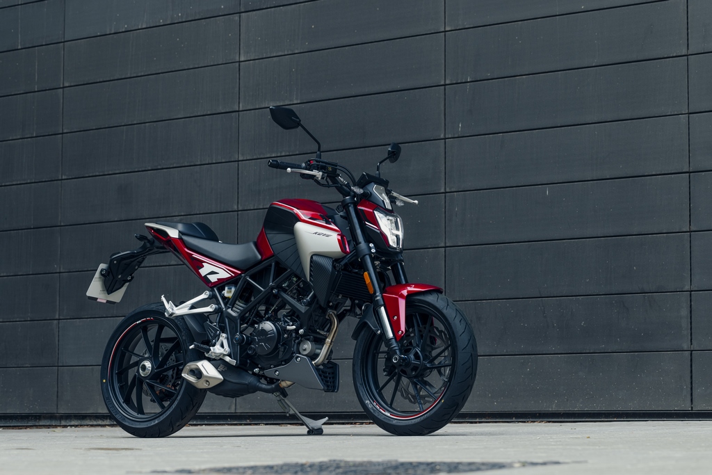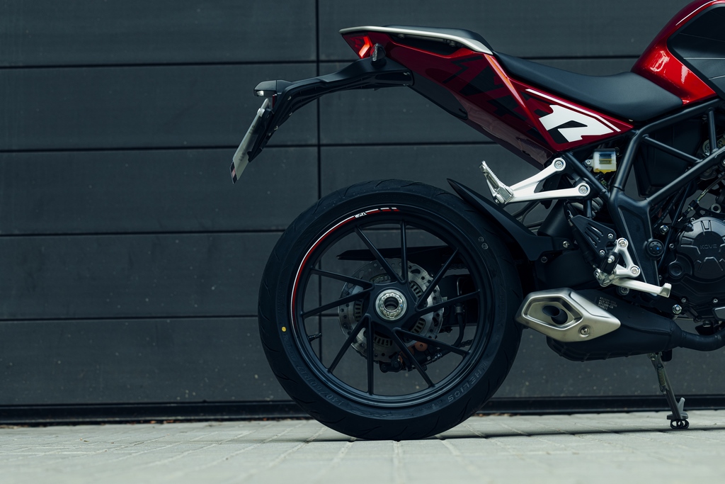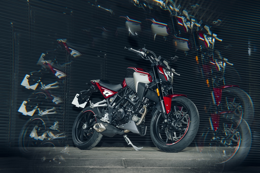 La única naked 125 con basculante monobrazo.