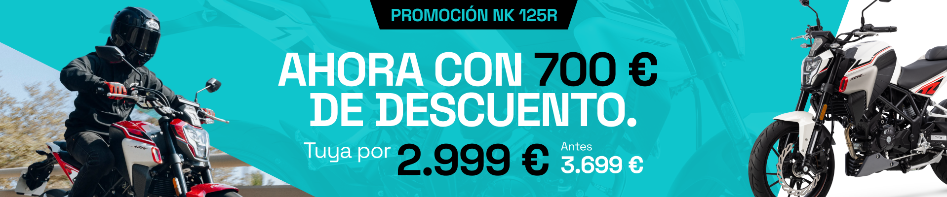Vive la libertad sobre dos ruedas con la NK 125R. Una moto que combina ligereza, diseño deportivo y una personalidad única. Con solo 135 kg, es increíblemente ágil mientras su estilo agresivo te hará destacar en cada trayecto.